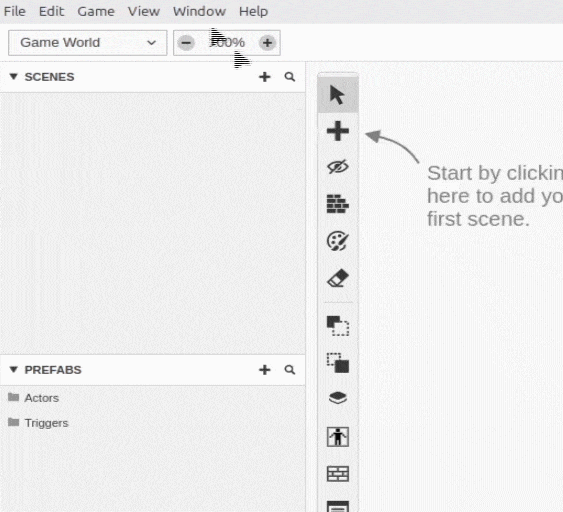 Game World is where you can assemble your game with scenes, actors, and triggers.