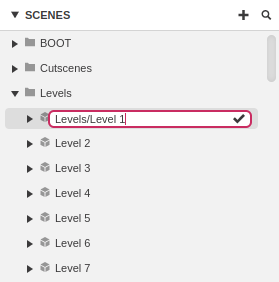 e.g. Naming a scene Levels/Level 1 as shown below: