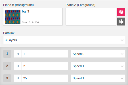 It can also be used for parallax scrolling — giving the illusion of depth by moving at a different speed than Plane B, make sure to review Backgrounds & Maps > Maps vs Images requirements, as parallax scrolling only works with images.